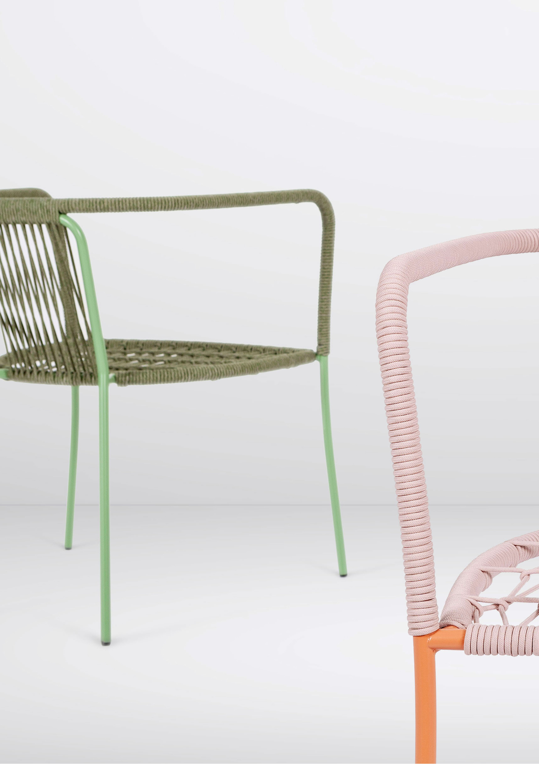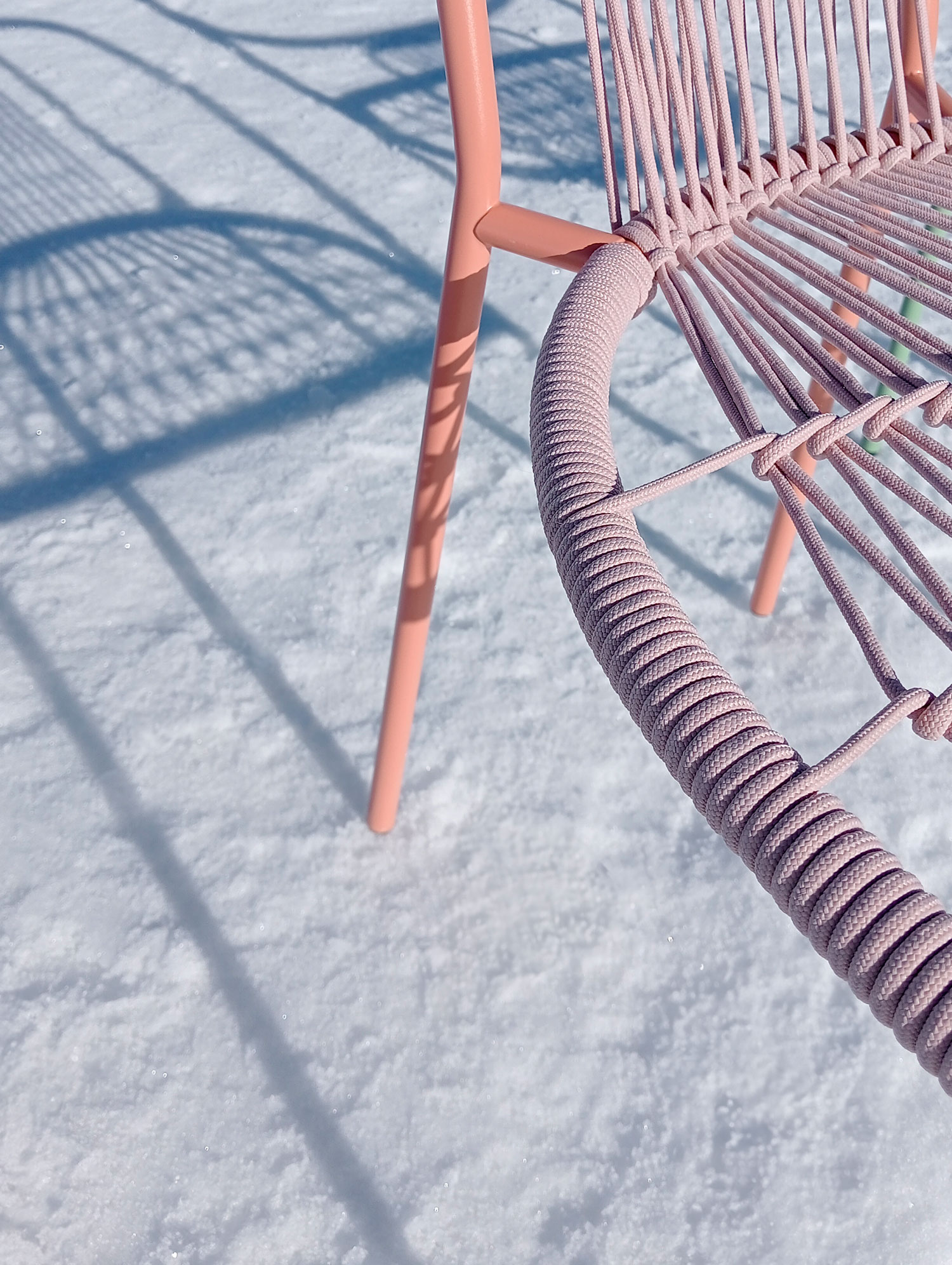 This careful craftsmanship harmoniously blends comfort with the strength and aesthetic appeal of the rope. The intricate woven details imbue a natural grace into its design, while the chair’s soft, sinuous lines create captivating plays of light and shadow, evoking the flutter of butterfly wings in a garden and bestowing outdoor spaces with an essence of elegance and Italian lifestyle.